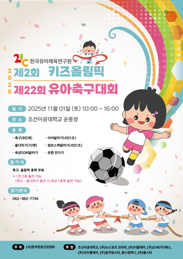 2025 [21c한국유아체육연구원배] 제22회 유아축구대회 × 제2회 키즈올림픽 개최 참가비 무료